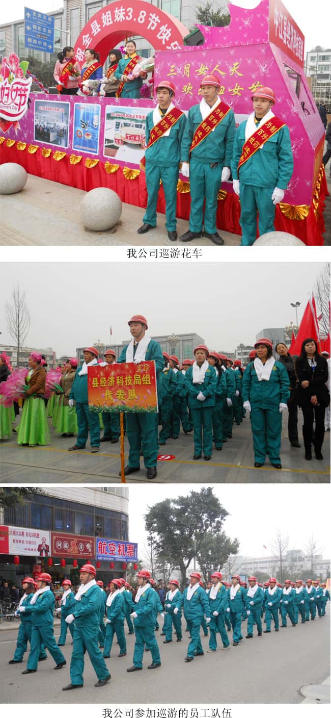 3月5日上午,中共中江縣委、縣政府在公園廣場隆重舉行“慶三·八展風采,促文化大繁榮”文藝巡遊活動。縣委副書記、縣長彭勇,縣人大主任蔣宗文,縣政協主席陳立貴,縣委常委、常務副縣長馮軍同誌以及在家的縣四大班子領導出席活動現場。逢春製藥52名ming員yuan工gong組zu成cheng的de代dai表biao隊dui代dai表biao縣xian經jing濟ji和he科ke技ji局ju組zu參can加jia了le文wen藝yi表biao演yan和he巡xun遊you,參can加jia本ben代dai表biao隊dui的de還hai有you縣xian經jing濟ji和he科ke技ji局ju的de陳chen副fu局ju長chang等deng領ling導dao和he縣xian食shi品pin藥yao監jian局ju的de領ling導dao。全quan縣xian有you13支“文藝巡遊表演活動”代表隊共1200餘人參加活動。