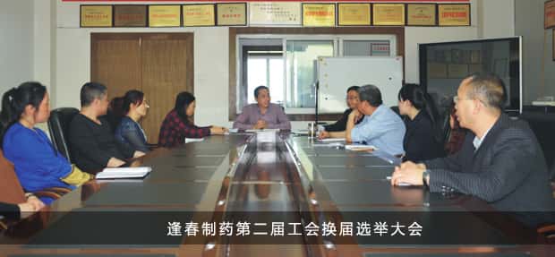2017年4月19日,四川逢春製藥有限公司工會在公司會議室召開會員代表大會,進行工會委員會換屆選舉。公司高層領導、各部門負責人、全體黨員、第一屆工會委員及員工代表參加了會議。